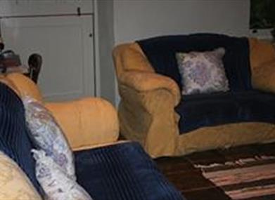 The original seventeenth century house on our hill farm, Rose cottage has been tastefully restored to retain its character and traditional cottage features- a crook and crane over the open fire, exposed stonework, quarry tiled floors and half-doors. Happily for our guests, we added the comforts of oil central heating, hot water and electrical appliances.The roses and honeysuckle around the red painted doors only hint at the cottage's delightful interior. The sitting/dining room has the open fire, a vaulted wood panelled ceiling, two comfortable sofas and an oak dining table and chairs. Next to it is the well equipped little kitchen with everything you need for cooking and dining for four people and more. To one side is a cute bedroom with a set of bunks, while on the other side of the house is the pretty double bedroom with en suite shower room. There is also a separate bathroom, with a shower over the bath.