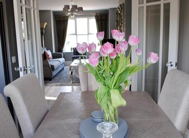 Number 4 Swallow Lane is an impressive, exclusive use property in the suburbs of Enniskillen, providing the perfect accommodation for a luxury break in Co. Fermanagh and an ideal base for exploring neighbouring counties like Donegal, Sligo and Cavan as well as further afield.This superb, modern, semi-detached two-storey house is a rare gem, surrounded by fields, yet only two miles from the centre of Ireland’s only island-town. Three stylish bedrooms comfortably sleep up to seven people in a mix of king, double and single beds dressed in superior quality linen. Two sleek bathrooms upstairs feature and opulent slipper bath and showers. Downstairs, the chic reception room boasts a wood burning stove and 50” Smart TV with DVD player, as well as superior quality furnishings. Double doors lead into the well-lit dining area and very well equipped kitchen with Belfast Sink and granite worktop, dishwasher, American Fridge Freezer with ice machine and filtered water, microwave, coffee machine and impressive gas/electric range style cooker.