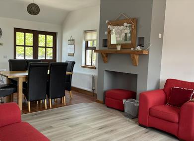 Tavnaghoney Cottages are in the Glens of Antrim, a short drive from Cushendun, Cushendall, Waterfoot and Glenariff. From the front entrance hall there is an open-plan living/dining area with spacious kitchen, with enclosed patio area through patio doors with slide, picnic table and space to cook with disposable BBQs. Also on the ground floor are a double ensuite bedroom and a twin bedroom.An ideal location to explore everything the area has to offer, with Cushendall Golf Course and beach less than 4km away. The beautiful village, caves and beach of Cushendun are 10 minutes' drive away and Glenariff Forest Park and Waterfalls are only 15 minutes' drive from Tavnaghoney.