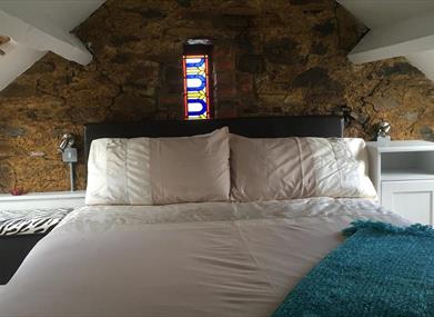 The Barn at Pink Cottage offers a unique and idyllic opportunity to experience total relaxation in a wonderful woodland setting. Recently converted in to luxurious accommodation, it exudes a certain charm, warmth and character.The open plan living area with galley kitchen is complemented with a lovely big wood burning stove, exposed stone walls and feature stained glass windows. All of which is overlooked by a romantic loft bedroom nestled under the eaves.
