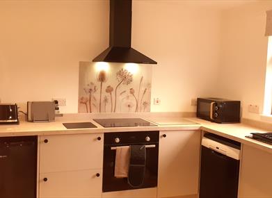 Kitchen: It has all the pots, pans, cutlery and utensils you should need. Tea, coffee, sugar, oil, vinegar, salt & pepper supplied. Oven, microwave, fridge and dishwasher (tablets, cleaning products, tea towels etc.. supplied).