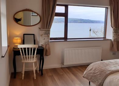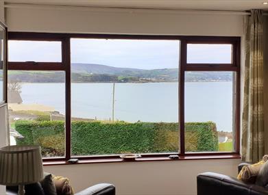Living room: Views of the Glen, Lurig , Cushendall, Cushendun and across to Scotland. Sitting at the window here is a great spot for watching the water activities in the bay or the spectacular sunsets. In any weather, all year round, you never tire of the changing views of the mountains and the sea. There is a TV, DVD player, with large selection of DVD's. Log burner with fire lighters, logs and coal.
