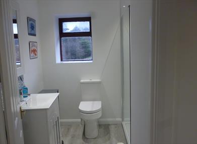 Downstairs shower room and toilet: Toilet, sink and large shower
