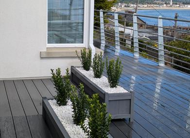 There is a fantastic decked area at the front of the property with seating for outdoor dining.