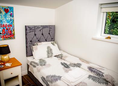 One single modern bedroom with double duvet to keep you warm and snuggly.