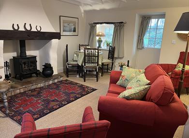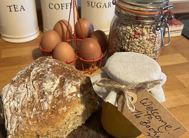 Accommodation is all on the ground floor. There are two bedrooms, one with a double bed and one with twin beds. A bathroom with loo, bath and a sensational thermostatically controlled deluge shower. A living and dining room, a long hall and fitted kitchen with pleasing design, colour schemes and all facilities. Oil central heating with woodburner in lounge. Electric oven & hob, microwave, fridge/freezer, washing machine/dryer, dishwasher, WiFi, TV, DVD, radio/CD, library of books, games & DVDs, cot & highchair, hairdryer, fresh flowers and welcome pack of locally produced bread, preserves, fresh eggs, milk and butter.