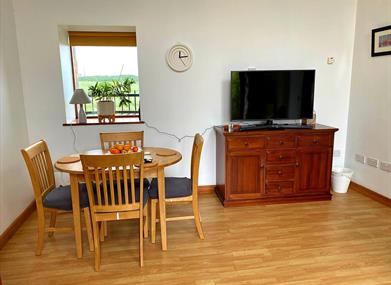 The property comprises of a spacious King size bedroom (with Smart TV) and generous en-suite shower room. A bright airy Living/Dining room with vaulted ceiling and French doors leading to a private enclosed patio, the room includes 'Stressless' armchairs, 43" Smart TV and double sofa-bed. A well equipped kitchen with dishwasher etc. is situated off the living area, with a second WC and shower room. Access to a Designated BBQ area available. No pets allowed and strictly no smoking within the property. The host is easily contactable 24/7 in the adjacent B&B.