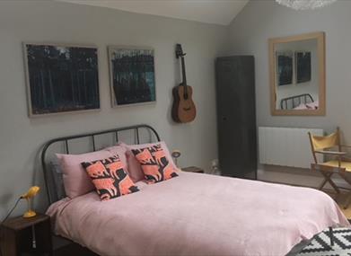 The Garden Studio has recently been renovated, there is a newly fitted ensuite bathroom with a large walk-in shower. The bedroom has a comfortable king size bed and we provide towels for all guests.The Garden Studio has a small kitchen that you can use for preparing simple meals - there is a fridge, sink, toaster, kettle and combination microwave & oven and we can provide a plug-in induction hob on request. The kitchen is kitted out with crockery, glassware and some cooking utensils. If you need to borrow anything else you can just let us know. There is a small dining area in the window in front of the garden for eating and relaxing. We'll provide you with the ingredients for preparing simple breakfasts while you are staying with us - freshly baked bread, butter, homemade jam, tea, coffee & milk.