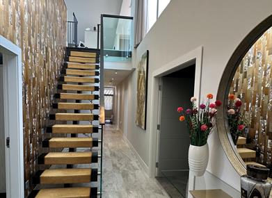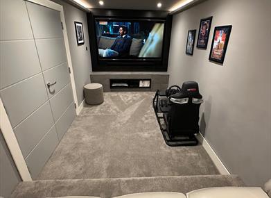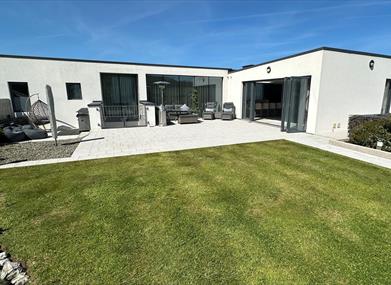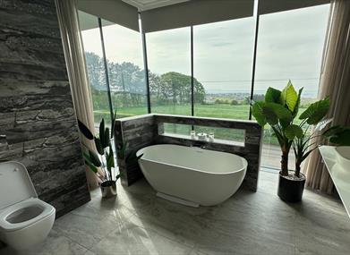 Luxury four-bedroom, inverted, detached house with stunning views of Portrush and the Atlantic Ocean. This exceptional property features a quirky cinema room, spacious outdoor area to the rear and private gated driveway. Sleeps 8 in 4 Double Beds which are all En Suite. Upstairs has AC for extra comfort during the sunny weather.