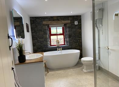 - Showers - The Glebe Cottage has a main Bathroom with A Bath, Shower, Toilet and Wash Hand-Basin The Master Bedroom- The Byre Cattle Room has a En-Suite with a Shower, Toilet and Wash Hand-Basin