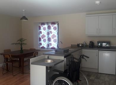 The kitchen has an additional lower sink and a lowered hob.
