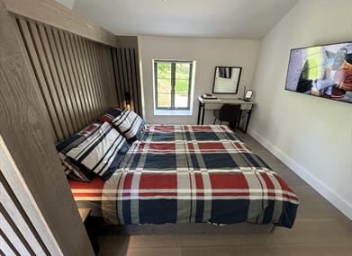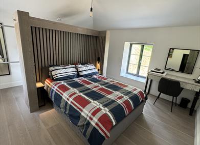 The Hay Loft comprises three well-appointed bedrooms, each thoughtfully designed with ample wardrobe space and a dedicated workspace, accommodating a total of six guests.