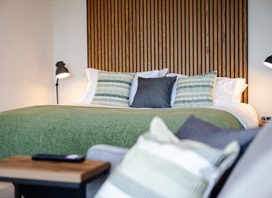 The Perch provides two distinct experiences; a "Tiny House" (max occupancy 4 - super king bed and a sofa bed in the living room) or a "Studio" (max occupancy 2- super king bed).