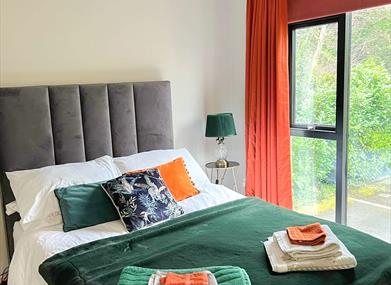 Moving onto the second bedroom, you'll find another indulgent double sized mattress with a velvet bed board and comfy cushions, offering the ultimate restful experience to help you prepare for the day ahead. Both bedrooms are designed to provide you with a tranquil and serene atmosphere, allowing you to fully relax and unwind. Come and experience the perfect blend of comfort and luxury in our bedrooms.