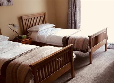 Our accommodation comprises of 2 bedrooms sleeping up to four people.One bedroom has twin singles and room for a cot if needed. The second room has a double bed and both rooms have seating. One shower room. Which means whether one or more guests, the whole accommodation is free for your use. This accommodation is a private annex for use of our guests only.