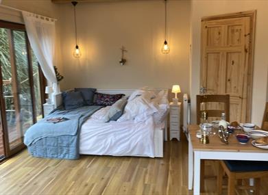 Situated deep in the South Down countryside in an area of outstanding beauty (AOB) The Summer House is close to the shores of Strangford Lough yet only minutes from local villages.This little gem offers the ultimate ‘get away from it all’ accommodation. Perfect for a couple or single adult wanting absolute peace and quiet or an ideal location to explore the area.The Summer House sits on a wide sunny deck on the edge of a little pond in a very private garden. It also has a sunny patio and gazebo with BBQ and hammock. Newly and extensively refurbished in 2020 it has a lovely bright studio bedroom with luxury en suite. It is fully glazed to two sides with lovely pond and garden views and is not overlooked. There is a romantic log burner and is also centrally heated, perfect for cosy evenings in.