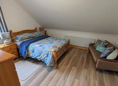 There is ample parking around the apartment and a patio area, with outdoor furniture and charcoal BBQ is located in the garden. A private self-contained apartment is located on the ground floor of the building. This is completely seperate to the first floor apartment.
