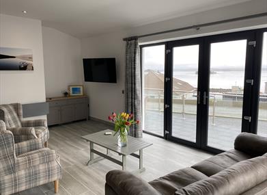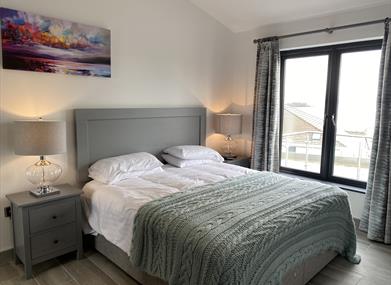 Comfortable accommodating 4 persons in 2 Bedrooms all of which have large windows overlooking the view. Twin Bedroom offers ensuite and 2nd Bedroom has Kingsize Bed making it ideal for families.