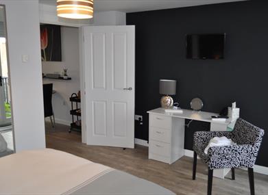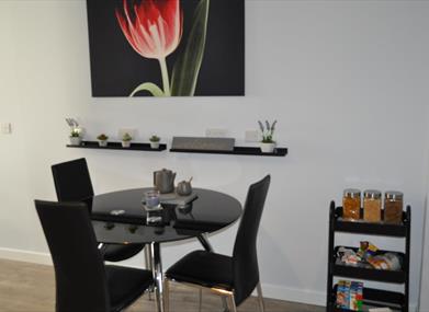 Upon entering the apartment there is a living area equipped with a smart TV, an electric fire, comfy seats, a sofa bed, stylish pictures, including a local artist's oil painting of Lurgan Park, making the living area very relaxing. There is also a board game and a puzzle perfect for having a cosy night in.
