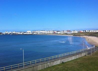 Superb three bedroom, two bathroom penthouse apartment on the front row with fantastic views overlooking the bay and West Strand Beach. Accommodation comprises of two doubles and a twin room, one of the double rooms has an en suite bathroom and twin room has an LED TV with PlayStation 2.Open plan kitchen, dining and lounge area. Kitchen has; washer/dryer, dishwasher, microwave, electric oven and gas hob. Gas heating. Bed linen and towels included. The views shown are taken from apartment window. Great restaurants and town centre all within walking distance.
