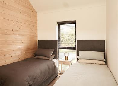 The master bedroom boasts a king sized bed, ensuite bathroom, and dressing table with mirror. The second bedroom offers verstaility with zip link beds that can be arranged as either twins or a super king sized bed.