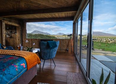 Unplug and unwind in The Goldfinches Retreat or Skylarks Retreat, 2 beautiful hand crafted luxurious Cabins. At the foot of the Mournes you will feel like you are floating above the fields. With a large picture window providing panoramic views for the famous Mourne Mountains and bifold doors out into your own private patio complete with a Hot Tub feel all your stress just disappear.