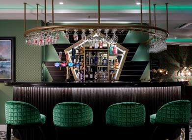 The cocktail bar at Elephant Rock Hotel exudes a chic and sophisticated ambiance, offering panoramic ocean views that perfectly complement its dramatic Art Deco interior. The bar features an extensive cocktail menu, including signature cocktails such as the Elephant Rock 75. Guests can enjoy an array of expertly crafted cocktails while soaking in the serene seaside scenery, making it an ideal spot for both relaxation and socializing.