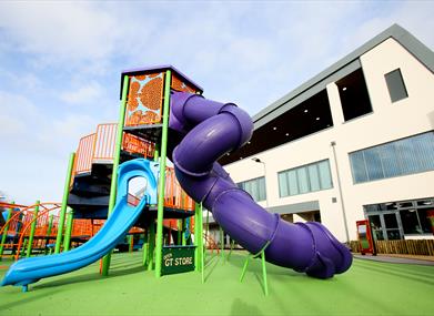Facilities include: a contemporary gym and swimming pools including a Splash Pool for young children. The Sports Hall and covered astro turf area (Dome) provide for a wide variety of sports including tennis, badminton and pickleball. For young children there is soft play within the complex and outside a play park including a sensory garden and accessible swing, a pump track and wheelpark.