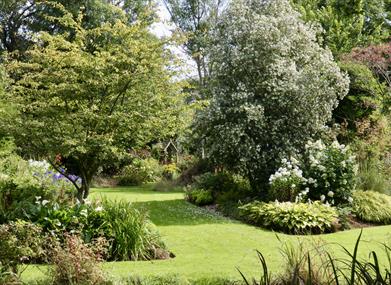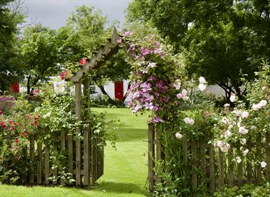 The Cottage Garden is awash with colour, scent and sounds for most of the year and in summer rambler roses tumble over the picket fence with aplomb.