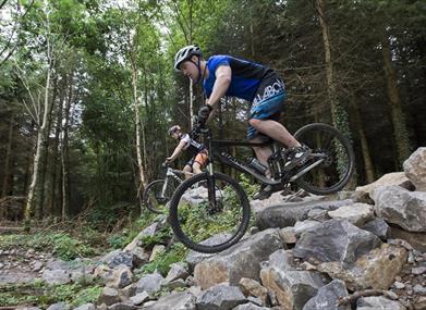 Geared up with more experienced mountain bikers in mind, this trail boasts a number of more severe optional black features which will be sure to get your heart racing.