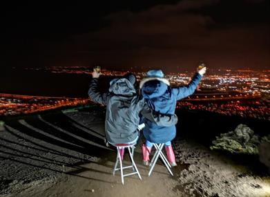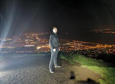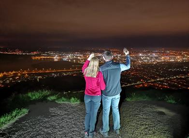 The flash lights to light up the dark trail will be provided at the start of the walk. At the summit we will be able to look out over Belfast city at night and enjoy a hot 'Norn Iron' toddy drink along with a well known and tasty snack that is made here in Northern Ireland.
