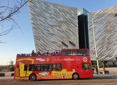 Enjoy 360 panoramic views and live expert commentary from the top open deck and learn all about the city's rich shared history. City Tours Belfast open top hop on hop off bus tours are the best way to explore Belfast. Travel between the peace-lines and walls and pass all of Belfast's major attractions such as Crumlin Road Gaol (1 of Ireland's most haunted locations ) HMS Caroline, St George's Market, Ulster Museum and the iconic Titanic Belfast. With each ticket bought directly, you will receive an exclusive discount to use when booking Titanic Belfast online, (stop 5 on the Belfast hop on hop off tour).
