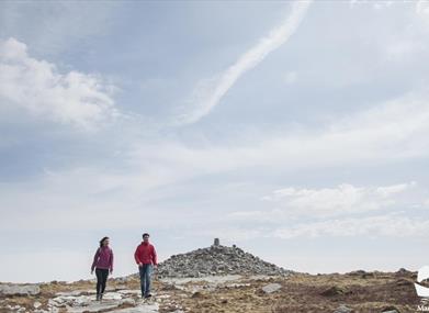 The Cuilcagh Way is a waymarked route that stretches for 33km through a breath taking patchwork of habitats in southern Fermanagh. The route can be walked in sections and provides stunning views, fascinating geology, mystifying wildlife, captivating archaeology and natural history: enough to whet anyone’s appetite for adventure. The Cuilcagh Hiker’s Trail is a way marked linear route that will appeal to experienced walkers who enjoy spectacular views and are interested in undertaking a vigorous, challenging walk in the wilderness. The terrain consists of a mountain path so some parts of the route can be very wet and boggy, particularly after a rainy period. Due to the often challenging weather conditions on Cuilcagh Mountain, careful planning, constant vigilance and good navigation are required all year round. The trail is a richly varied one in terms of topography and features, and includes walking over a glacial landscape in a mountainous environment passing by dry valleys, limestone pavement, mountain rivers and sandstone outcrops. This area is also managed by the Royal Society for the Protection of Birds so keep alert for signs of the rare Golden Plover nesting in the area. As the route begins on the mountain there is no significant climb until the steep and vigorous 300metre scramble up the mountain face through rocky outcrops. Arriving on the summit you can’t miss the ancient cairn (the remains of a burial mound dating from the Bronze Age 2,500 – 500 BC). The summit provides a great vantage point to view the picturesque lowlands of County Fermanagh and Cavan and on an exceptionally clear day you can see both the Irish Sea and the Atlantic Ocean along with several surrounding counties. Route description written as if you are starting the walk from the Gortalughany Viewpoint car park. Walk Highlight The summit plateau of Cuilcagh Mountain marks the border between County Fermanagh (in Northern Ireland) and County Cavan (in the Republic of Ireland) with a height of 666 metres (2,182 ft) it is the highest point in both counties and the 165th highest mountain on the island of Ireland.