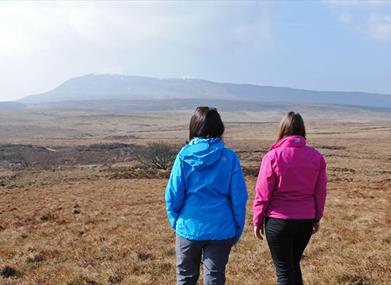 Section 3 of the Cuilcagh WayA vigorous and exposed route through expansive blanket bog, involving a steep climb to reach the summit cairn of Cuilcagh Mountain, offering breathtaking views over the surrounding landscape. This route is mostly on blanket bog, crossing wet, uneven ground. Full mountain precautions and experience required. Marked pink on the attached map. The Cuilcagh Way is part of the Marble Arch Caves Global Geopark.