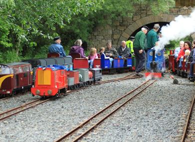 Leave the station and ride around a scenic and varied track which crosses bridges, dives into tunnels and winds itself around mature grounds as it crosses itself, a level crossing and a stream with surprises around every corner. Watch out for the signal box engine sheds embankments and cuttings. It’s a great adventure for all ages.