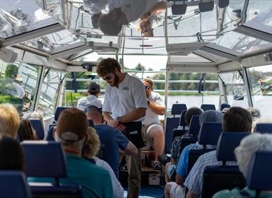 Devenish Island Tour - MV Kestrel (Public Tour) Come on a journey to hear a tale of history and tranquility. Check out the abundance of waterside wildlife and see if you can spot the fast and colourful Kingfisher as it flies low to the water near the nesting site.Once moored at Devenish Island, you can disembark and learn about its history dating back to the 6th Century, including the best preserved Round Tower in Ireland, Augustinian Abbey, church ruins, ancient graveyards and high cross. There is also a small museum and toilet facilities. Enjoy our fully-licenced bar offering a range of options from beers and wines to tea and coffee, as well as snacks. There is a toilet on board for your comfort. Wheelchairs can be brought on board with help from staff. Dogs are welcome, but must be kept on a lead at all times both on board the boat and at Devenish Island.