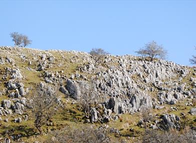 The Cuilcagh Way is a waymarked route that stretches for 33km through a breath taking patchwork of habitats in southern Fermanagh. The route can be walked in sections and provides stunning views, fascinating geology, mystifying wildlife, captivating archaeology and natural history: enough to whet anyone’s appetite for adventure. The initial part of the walk from the Florence Court Visitor Centre car park 1 skirts around the grounds of Florence Court House which enjoys a majestic countryside setting. The charming 18th century mansion offers guided tours and the estate provides good facilities for relaxation and refreshment in the Stables Tearoom before pressing on with your walk. When starting your walk from the car park, follow the Florence Court waymarked red trail, for the next few kilometres it takes you along narrow tracks which twist and turn an undulating course past mixed deciduous woodland crossing the Larganess River in several places, the constant burbling of the river making this section a delight. As you reach the edge of the forest you will pick up the trail sign for the Cuilcagh Way (Florence Court Forest Trail). Things get a little more rugged as you traverse across open farmland edged with dry stone walls. If you are vigilant, you may spot the elusive Irish hare. Larger than rabbits, adult hares have black tips on their ears and their longer back legs give them a distinctive walk or ‘lope’. Gortmaconnell Rock is a prominent feature on the landscape ahead, the trail skirts around the base of the hill to descend to the country road. The last 1.5km stretch of your journey will take you along the Marlbank country road to the Marble Arch Caves Visitor Centre.