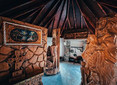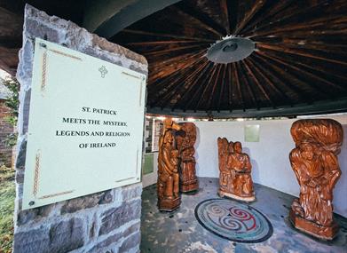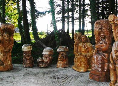 The Devenish Figures are a unique collection of wooden sculptures carved out of Irish oak. The figures of saints and scholars which include Saints Patrick, Brigid, Columbanus, Gall, Molaise, Columcille and Killian, are the work of Lithuanian sculptor Jonas Raiskas. Jonas, a native of Lithuania came to work in Irvinestown in 2007. He worked from 2007 until 2011 carving the beautiful figures for the garden.