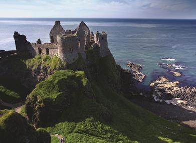 Our next stop is a photo opportunity at Dunluce Castle. This now ruined medieval castle sits perched on the edge of a basalt cliff and is one of the most picturesque and romantic castles anywhere in Ireland.