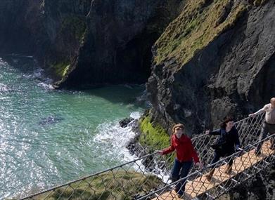 After lunch we visit the amazing Carrick a Rede rope bridge – where you can of course cross the bridge which spans a chasm over 75ft in height. The lovely coastal path provides a spectacular walk with stunning sea and cliff views. There is a small charge to cross the bridge.
