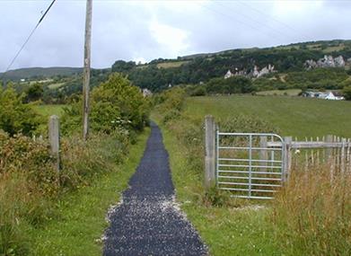 •  From Carnlough (with its beautiful Carnlough Beach), take the steps going uphill beside the 'Harbour Lights' building. This takes you around to the right and across a bridge over the main road.