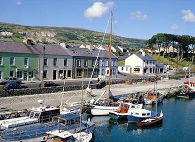 2. Carnlough's sheltered historic harbour, with small fishing boats, is the focal point of…