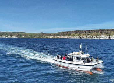 Kintra Boat Tours sails all year round from Ballycastle along the Causeway Coast and Rathlin Island, one of Ireland's most spectacular wildlife habitats with breath taking scenery.