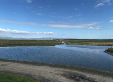 From the car park at Station Road, Ballykelly, follow the gravel track that runs behind the sea wall and Lough Foyle. After 3.5 kms the track climbs a short distance and turns sharp right to follow the bank of Burnfoot river or Broharris canal. Use the footbridge to cross the river to the Ballymacran side, turn left and follow the track past the bird hide as it hugs the sea wall, towards Myroe and the ‘horseshoe bends.’