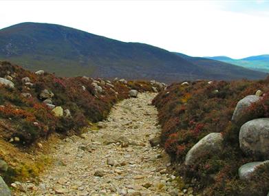 Route 5 in a pack of walks titled - 'Mourne Mountain Walks' produced by Mourne Heritage Trust. Also in Newry & Mourne Walking Guide