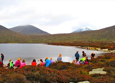 Lough Shannagh walk leads up hill on the 'Banns Road', an off road farm track. The route circles Lough Shannagh (in an anti-clockwise direction) with a high point of 587m at Carn Mountain. It also follows and crosses the Mourne Wall on places.