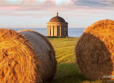 Starting at Bishop’s Gate entrance to the Demesne, proceed past a quaint gothic style gate lodge (private residence) and enter into the Bishop’s Gate Gardens – look out for the unusual bog garden. At a fork in the main path, take the right track – a well surfaced woodland path and pass through a relict arboretum with many rare tree species. At another pronounced fork, follow signs for Mussenden Temple up a steepish grass track. Through a small wooden gate proceed on to gain a majestic view of the gaunt ruins of Downhill House. At this stage you can explore the ruin, or either head to Mussenden Temple which now beckons, perched on the cliff edge. The views of Ireland’s North Coast and some of the Scottish Western Isles (Islay & Jura) on a clear day are very impressive. At this point, walkers can choose to retrace their steps or the more adventurous can head west (left of the Temple), making sure to correctly locate the mown grass track through the hay meadows and head for another unusual built feature – the dovecote (another circular type building). From the dovecote, with ice house below – a fantasy landscape of a walled garden appears. On exiting the walled garden, all paths lead back to the ruins of Downhill House, but to return to your starting point veer off to the right, just before the front of the house – following a grass track. This grass track leads to the Mausoleum and back to the gardens at Bishop’s Gate. You have now completed 2 miles…and a bit! Please note National Trust entrance fees apply to this walk. For details see National Trust Downhill