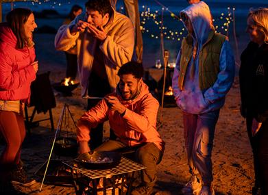 Then you'll head for a dip in the nearby ocean - those waves are calling to you! Whether you're a keen sea swimmer, or prefer a gentle walk along the shoreline, this is your time to disconnect from the to-do lists and just enjoy being in nature. Thoroughly refreshed, you'll get wrapped up in a cosy dry robe before sitting down to a wild cooked meal. There's opportunities to get involved cooking local produce and foraged ingredients, and you may even be joined by a local chef.