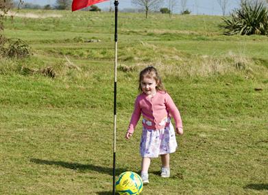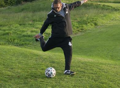 Footgolf mixes the kicking of a football around a specially designed 18-hole footgolf course. The aim is to complete each hole using as few shots as possible. The winner is the one who used the least shots to complete the 18 hole course. The great thing about footgolf is anyone can play it and its suitable for all ages. The average round takes approximately 1-2 hours.