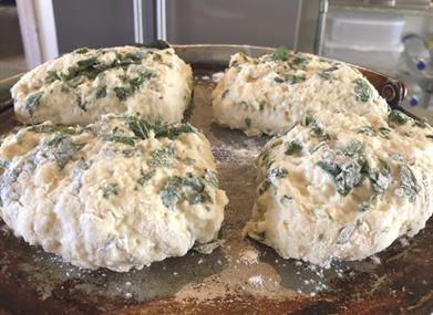 A lunch of nettle soup is served to enjoy with your own soda bread.